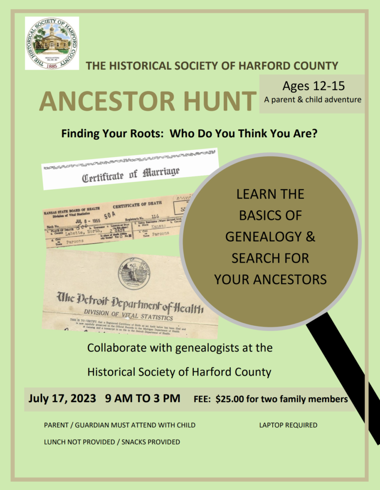 Learn the basics of genealogy and search for your ancestors. Register for free if you are a member, or purchase a $10 ticket if you are not.