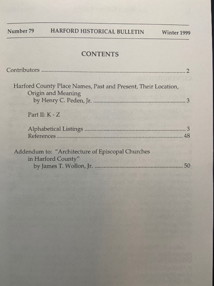 / Issue #79 – Harford County Place Names, Past and Present, Their Location, Origin and Meaning: Part 2. K-Z