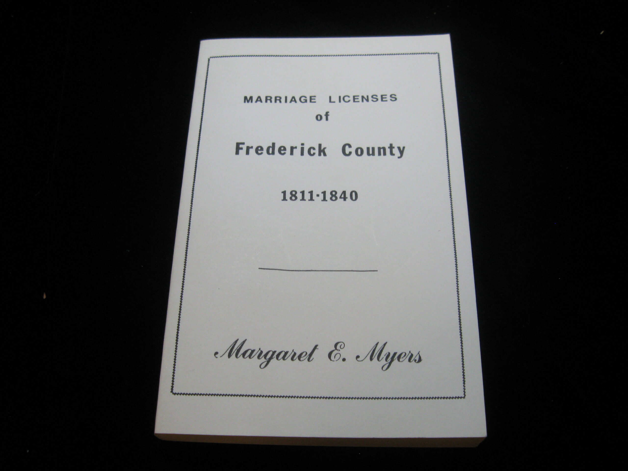 Marriage Licenses of Frederick County 1811-1840 by Margaret E. Myers.  Used.  Good Condition