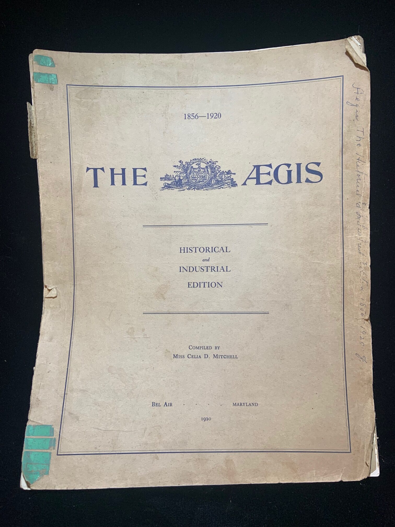 The Aegis, 1856 to 1920, Historical and Industrial Edition. Compiled by Miss. Celia D. Mitchell. Used. Wear and Tear.
