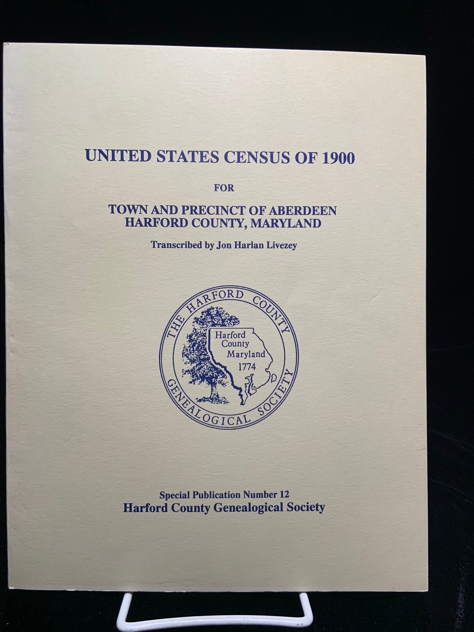 The United States Census of 1900 For Town and Precinct of Aberdeen Maryland, Transcribed by Jon Harlan Livezey.  Special Publication Number 12, for The Harford County Genealogical Society.  Due to limited inventory photocopies may be provided.